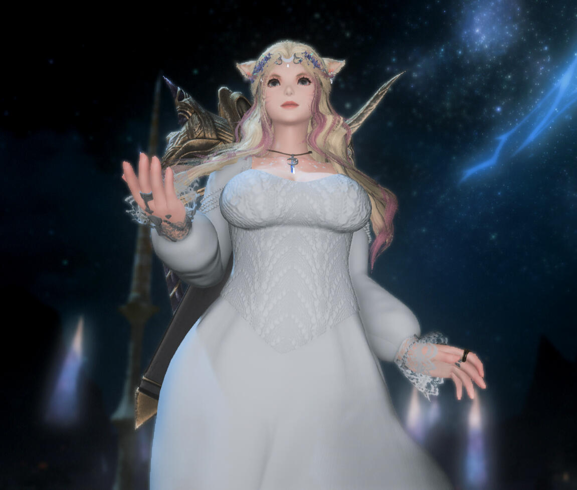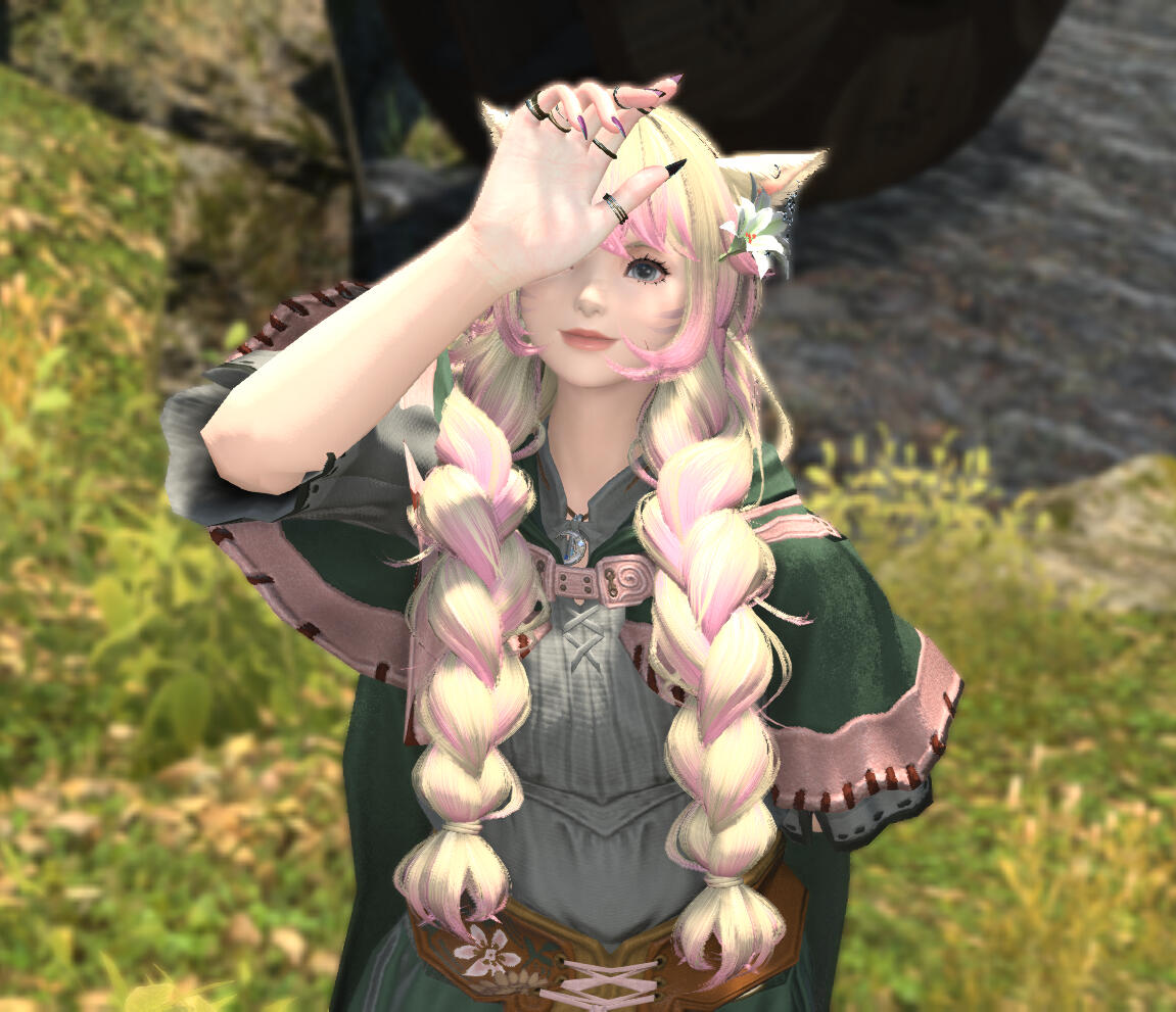 Though shy and a bit timid, she does not experience much social anxiety in the way of caring about what others think of her- that is, at least in the way of not caring much if other people find her odd or awkward, and she would rather have friends of good quality than quantity. She struggles with small talk and knowing when to enter a conversation without being invited. That said, once she gets past that initial awkwardness, she loves a thoughtful conversation and getting to know people and loves to hear their stories. She is deeply introspective, with a rich inner world and many insights about the world around her.Her time as the Warrior of Light has left her quite solemn at times. She already had her fair share of trauma before that, and she struggles to cope with the mounting baggage. She feels a deep sense of responsibility to the people, to show up and do all she can for the good of everyone and is self-sacrificial to a fault. She feels it is her duty to bear these heavy burdens, and fears seeming weak or unworthy if she were to struggle too outwardly and is mortified by the thought of burdening others. Due to her upbringing, she also feels a sense of responsibility to her fellow Keepers to represent them well... even if she did flee her clan due to how she failed to fit into the social structure.She's tired. She dissociates a lot. She would really like to rest. But she'll never say it.