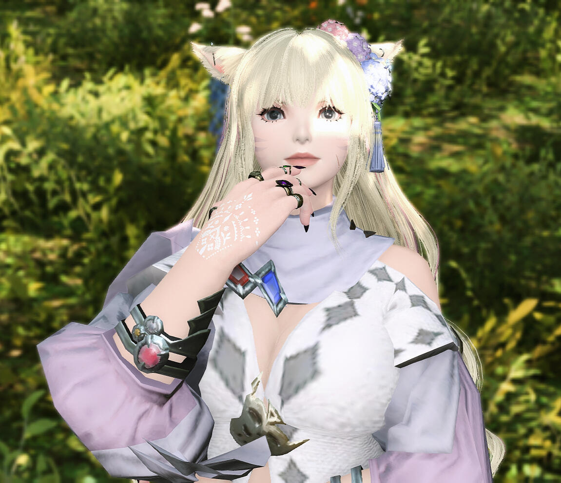 Though shy and a bit timid, she does not experience much social anxiety in the way of caring about what others think of her- that is, at least in the way of not caring much if other people find her odd or awkward, and she would rather have friends of good quality than quantity. She struggles with small talk and knowing when to enter a conversation without being invited. That said, once she gets past that initial awkwardness, she loves a thoughtful conversation and getting to know people and loves to hear their stories. She is deeply introspective, with a rich inner world and many insights about the world around her.Her time as the Warrior of Light has left her quite solemn at times. She already had her fair share of trauma before that, and she struggles to cope with the mounting baggage. She feels a deep sense of responsibility to the people, to show up and do all she can for the good of everyone and is self-sacrificial to a fault. She feels it is her duty to bear these heavy burdens, and fears seeming weak or unworthy if she were to struggle too outwardly and is mortified by the thought of burdening others. Due to her upbringing, she also feels a sense of responsibility to her fellow Keepers to represent them well... even if she did flee her clan due to how she failed to fit into the social structure.She's tired. She dissociates a lot. She would really like to rest. But she'll never say it.